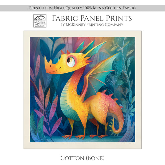 Dragon Fabric - Fairy Tale Painting, Fantasy, Cotton, Boy, Baby Fabric Panels, Nursery Décor, Quilt Block, Quilting