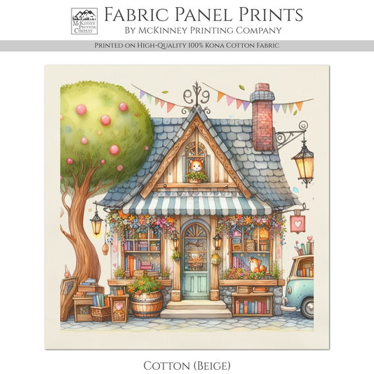 Baby Fabric - Book Store, Cottage, Nursery, Fabric Book Panel, Village, Infant, Sewing, Block Print, Cotton, Quilt