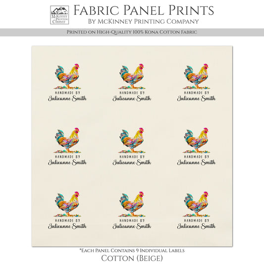 Quilt Labels - Handmade, Fabric Tags, Quilting, Crafting and Sewing Tags, Watercolor, Chicken Fabric, Rooster