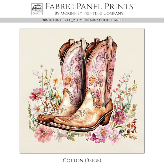 Wester Fabric - Cowgirl Boots, Floral, Farm, Pink, Rodeo, Ranch, Wall Art, Large Print, Crafts, Quilt, Block Print Fabric, Quilting, Sewing