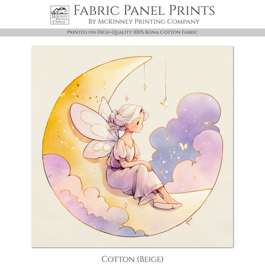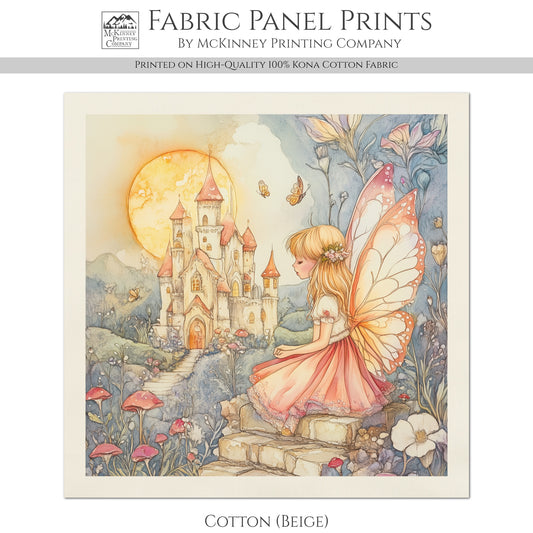 Fairy Fabric - Fairy Tale Painting, Fantasy, Mushroom, Cotton, Girl, Floral, Baby, Nursery Décor, Quilt Block, Quilting