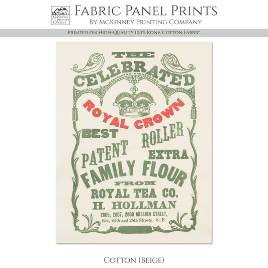 Flour Sack Fabric - Cooking, Food, Baking, Vintage, Feed, Antique, San Francisco, Large Print Fabric, Wall Art, Block Print, Cotton, Quilting