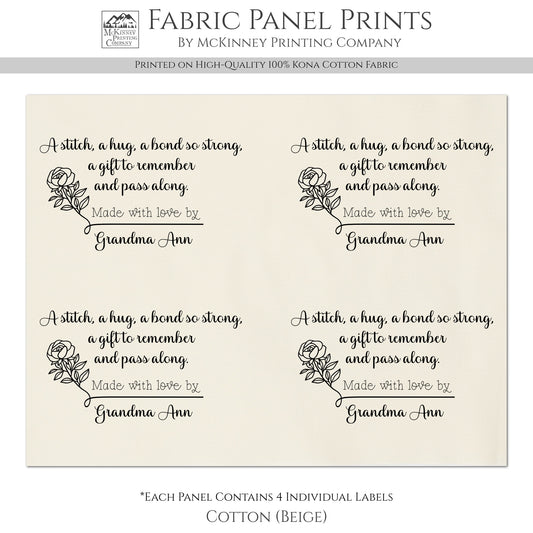 Quilt Labels - Custom, Quilt Labels Personalized, Sewing, Fabric Tags, Fabric Panel Print, Quilt Block