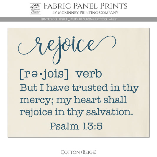 Christian Fabric - Rejoice, Psalm 13:5, Quilt Block, Religious Fabric, Scripture, Wall Art, Cotton, Quilting