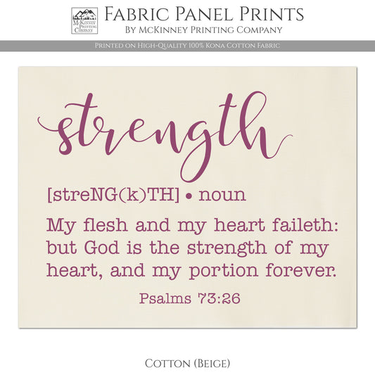 Scripture Fabric - Strength, Psalm 73:26, Quilt Block, Religious Fabric, Christian, Wall Art, Cotton, Quilting