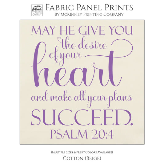 Religious Cotton Fabric - May He give you the Desire of your Heart, Psalm 20 4, Scripture, Bible Verse Wall Art, Quilt Block, Print, Motivational