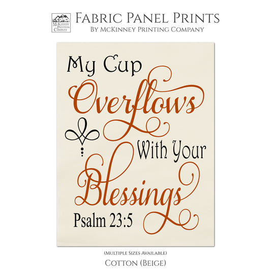 Religious Cotton Fabric - Psalm 23:5, My Cup Overflows, Christian, Wall Art, Quilt Block, Quilting