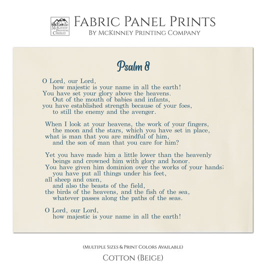 Religious Fabric, Panel - Psalm 8, O Lord, Our Lord, Christian, Scripture, Bible Verse, Cotton, Quilt Block, Quilting, Wall Art