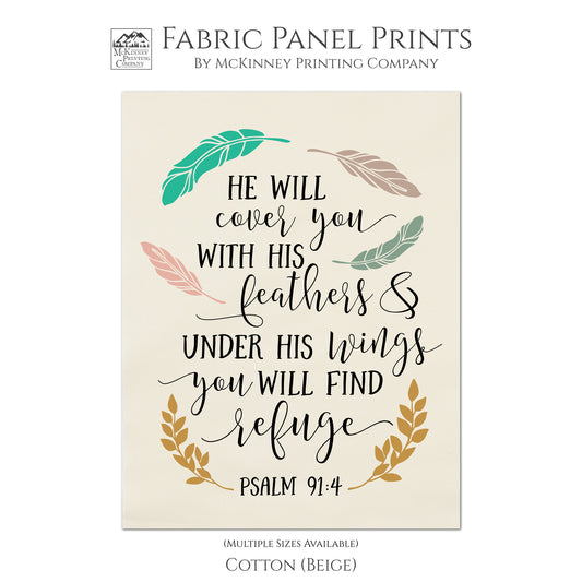 Psalm 91 - Religious Cotton Fabric, He Will Cover You With His Feathers, Quilt Block, Quilting,Wall Art