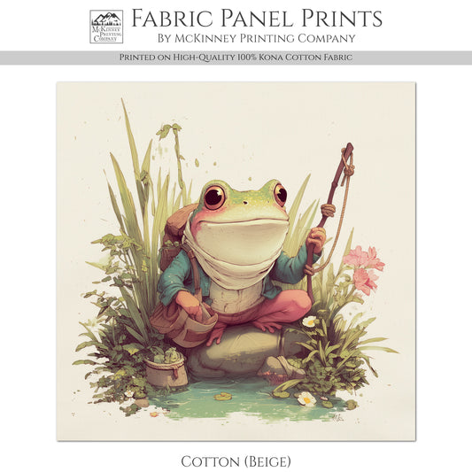 Frog Fabric - Fishing, Patch, Shirt, Hoodie, Crafts, Nursery Décor, Quilt Block, Wall Art, Cotton, Quilting
