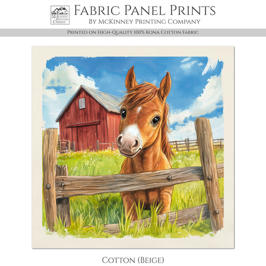 Farm Animal Fabric - Horse Fabric, Baby Fabric Panels, Cotton, Nursery Décor, Infant, Quilt Block, Wall Art, Quilting, Sewing