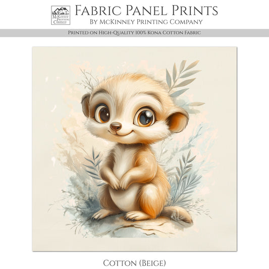 Meerkat - Baby Fabric Panels, Canvas, Jungle, Animal, Nursery Décor, Quilt Block, Wall Art, Cotton, Quilting