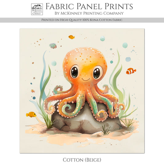 Octopus Fabric - Baby Fabric Panels, Sea, Ocean, Boy, Blanket, Nursery Décor, Quilt Block, Cotton, Quilting