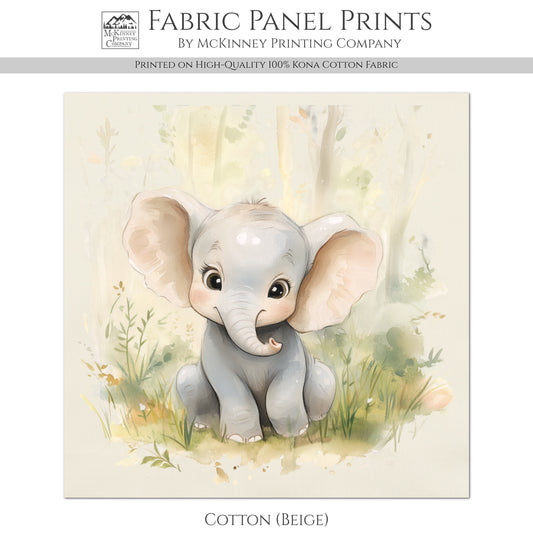 Elephant Fabric - Baby Fabric Panels, Canvas, Shower Gift, Nursery Décor, Quilt Block, Wall Art, Cotton, Quilting