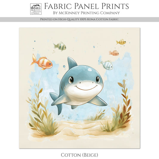 Baby Shark Fabric - Baby Fabric Panels, Sea, Ocean, Boy, Blanket, Nursery Décor, Quilt Block, Cotton, Quilting