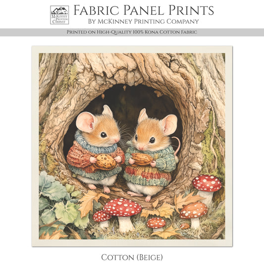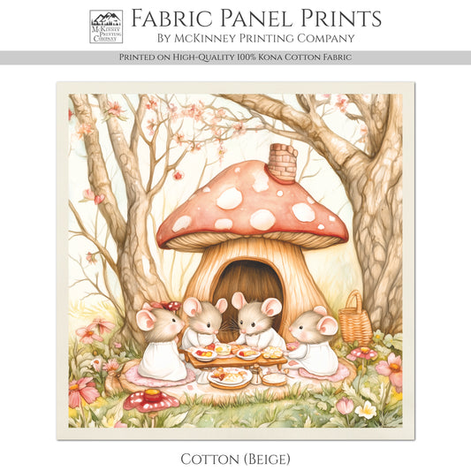 Mushroom Fabric - Mouse, Beatrix Potter, Baby Fabric Panels, Infant, Woodland Animal, Child, Nursery Décor, Quilt Block, Cotton, Quilting