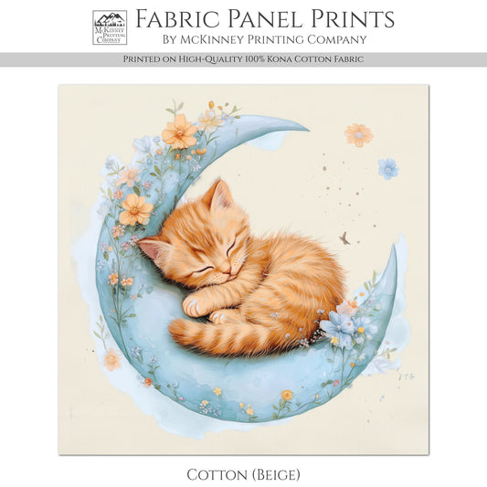 Cat Fabric - Baby Fabric Panels, Kitten, Canvas, Shower Gift, Nursery Décor, Quilt Block, Wall Art, Cotton, Quilting