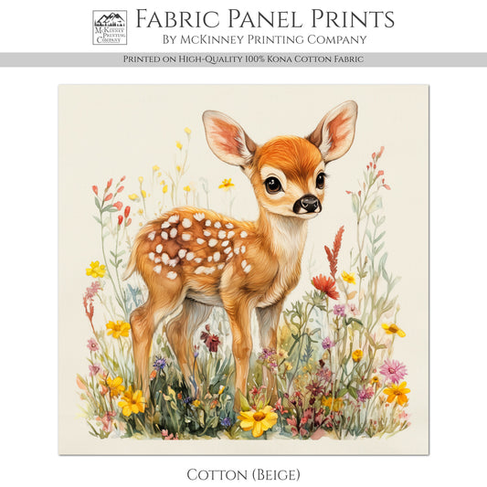 Baby Deer Fabric - Baby Fabric Panels, Animal, Canvas, Fawn, Woodland Animal, Nursery Décor, Quilt Block, Wall Art, Cotton, Quilting