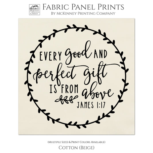 Religious Fabric - James 1:17, Every Good and Perfect Gift, Baby Bible Verse, Christian Print, Large, Quilt Block, Baby Fabric Panel