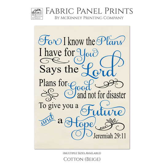 Jeremiah 29:11 - Religious Fabric, For I Know the Plans, Scripture, Quilting Supplies, Quilts, Wall Art