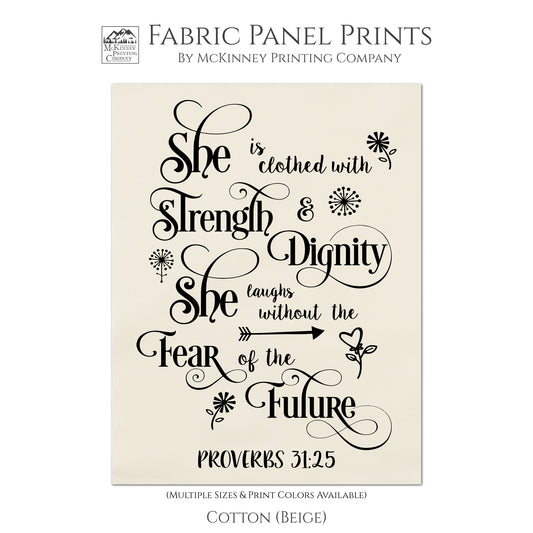 Proverbs 31:25 - Baby Fabric Panels, She is Clothed with Strength and Dignity, Wall Art, Quilt Block, Girl, Religious
