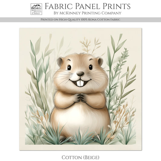 Beaver - Woodland Animal Fabric, Baby Fabric Panels, Forest, Nursery Décor, Quilt Block, Wall Art, Cotton, Quilting
