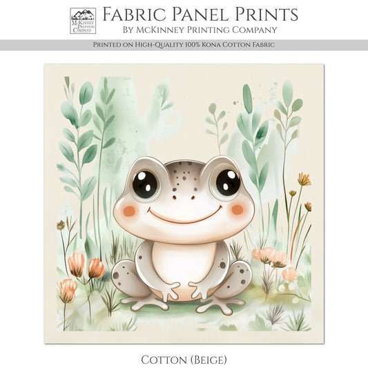Frog Fabric - Woodland Animal, Baby Fabric Panels, Forest, Nursery Décor, Quilt Block, Wall Art, Cotton, Quilting