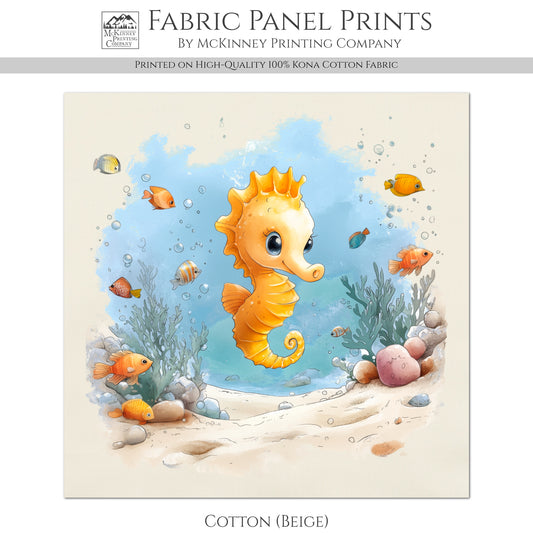 Seahorse Fabric - Baby Fabric Panels, Sea, Ocean, Boy, Blanket, Nursery Décor, Quilt Block, Cotton, Quilting