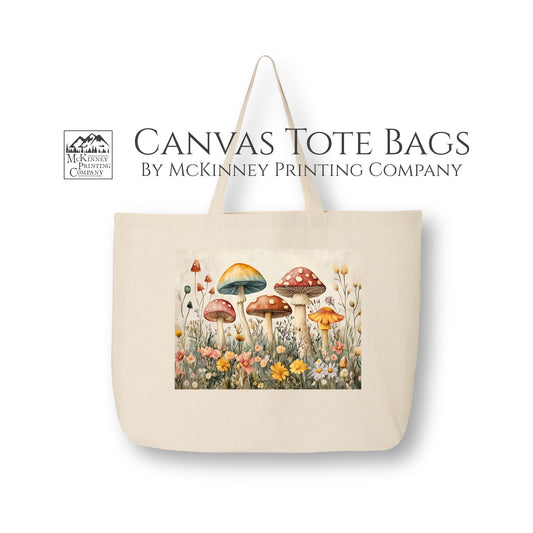 Mushroom Tote - Cottagecore , Aesthetic Tote Bag, Mushroom Bag, Large Canvas Tote Bag, Canvas Tote Bag with Zipper, Gift, Cute, Fabric Shoulder Bag