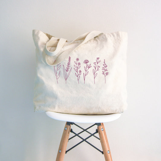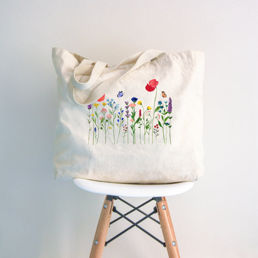 Flower Tote Bag - Wildflower, Floral, Canvas Tote Bag with Zipper, Large, Fabric Shoulder Bag