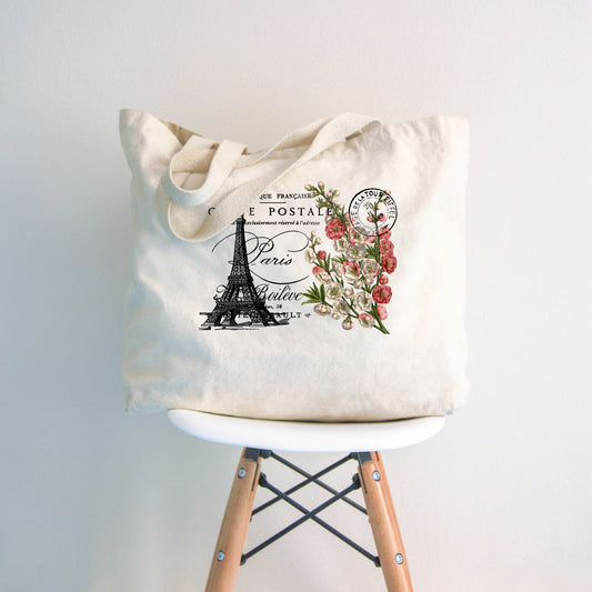 Shabby Chic Bag - Paris, Eiffel Tower, French, Flower, Canvas Tote Bag with Zipper, Large