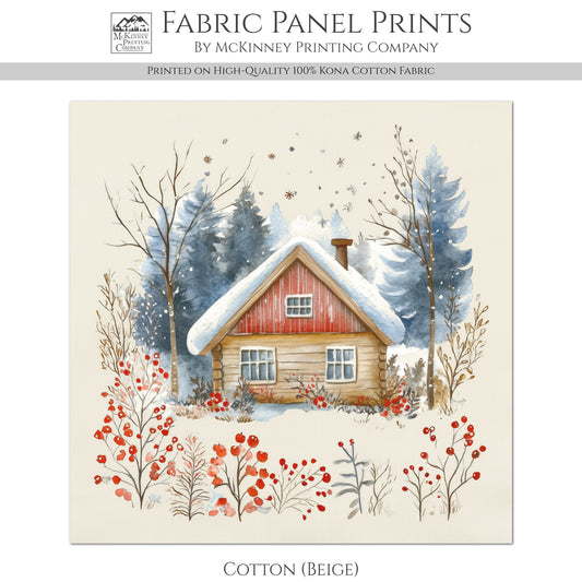 Christmas Fabric Panels - Christmas Village, House, Cabin, Woodland, Cotton, Wall Art, Large Print, Block Print, Cotton, Quilting, Quilt, Sewing