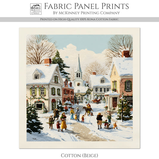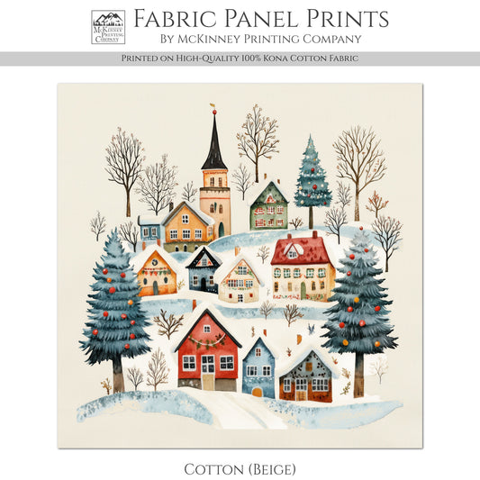 Christmas Village - Christmas Fabric Panels, Cotton, House, Victorian Decor, Wall Art, Large Print, Block Print, Cotton, Quilting, Quilt, Sewing