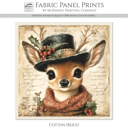 Christmas Fabric Panel - Deer Fabric, Woodland Animal, Nursery Décor, Quilt Block, Wall Art, Baby, Holiday