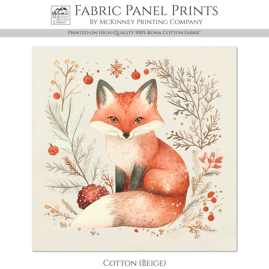 Fox Fabric - Christmas Fabric Panels, Cotton, Baby Fabric Panels, Animal, Winter, Woodland, Wall Art, Large Print, Cotton, Quilting, Quilt