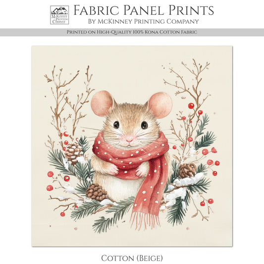 Christmas Mouse - Christmas Fabric Panels, Cotton, Baby Fabric Panels, Animal, Decor, Wall Art, Large Print, Block Print, Cotton, Quilting, Quilt