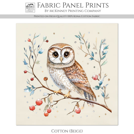 Owl Fabric - Christmas Fabric Panel, Cotton, Bird, Animal, Decor, Wall Art, Large Print, Block Print, Cotton, Quilting, Quilt, Sewing, Crafts