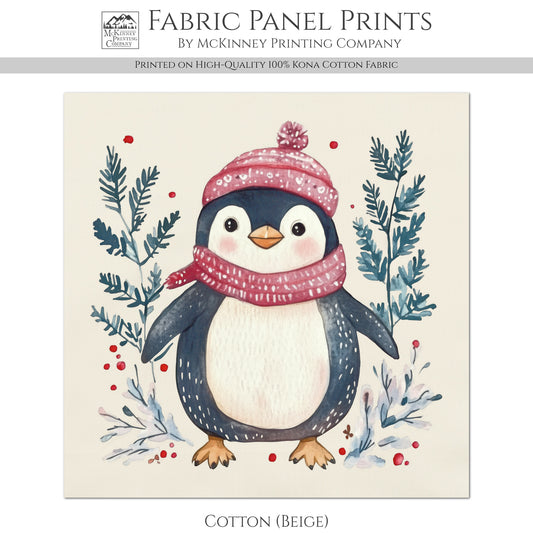 Penguin Fabric - Christmas Fabric Panel, Cotton, Baby Fabric, Animal, Decor, Wall Art, Large Print, Block Print, Cotton, Quilting, Quilt, Sewing