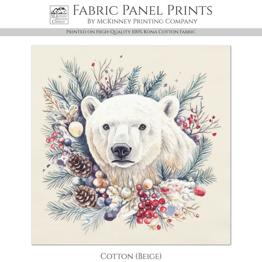 Polar Bear Fabric - Christmas Fabric Panels, Cotton, Baby Fabric Panels, Animal, Decor, Wall Art, Large Print, Block Print, Cotton, Quilting, Quilt