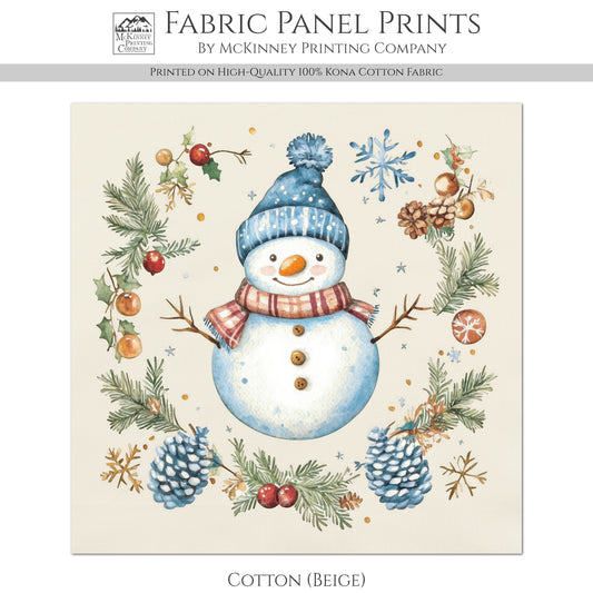 Snowman Fabric - Christmas Fabric Panel, Cotton, Holiday, Winter Decor, Wall Art, Large Print, Block Print, Cotton, Quilting, Quilt, Sewing