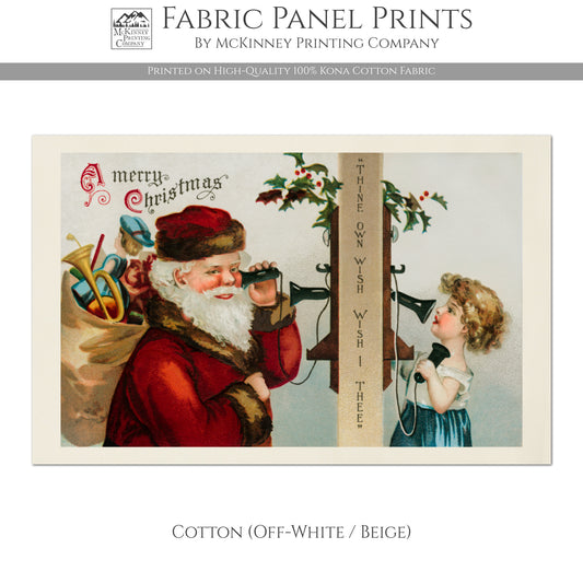 Vintage Santa - Christmas Fabric Panels, Victorian Décor, Quilt Block, Wall Art, Cotton, Quilting