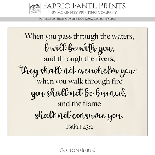 Isaiah 43:2 - Scripture Fabric, Religious, Bible Verse, Christian, Large and Small Cotton, Quilt Block, Panel