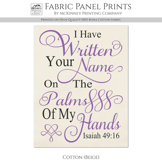 Isaiah 49:16 - Christian Fabric, Scripture Wall Art, Quilt Block, Large, Canvas, Cotton, Muslin, Quilt