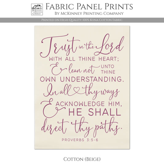 Trust In The Lord - Religious Fabric, Proverbs 3:5-6, Christian, Bible Verse Wall Art, Kona Cotton, Quilt Block