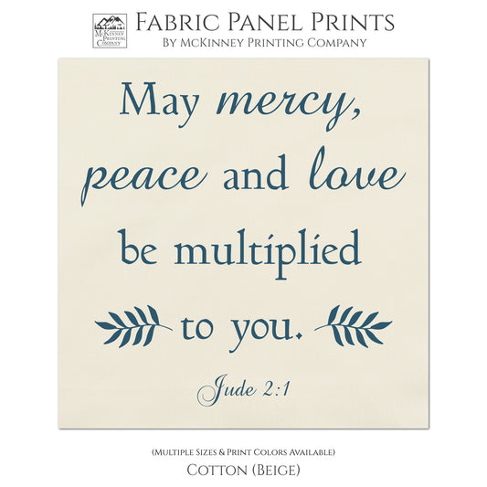 Religious Fabric - Mercy, Peace, Love, Jude 2:1, Christian, Bible Verse Wall Art, Scripture, Quilt Block