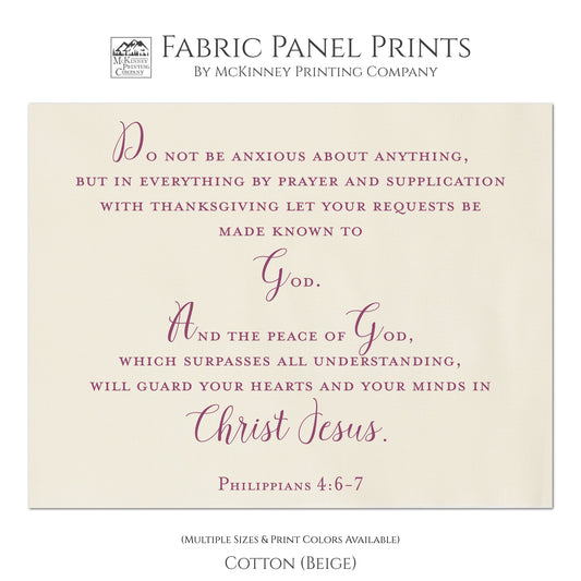 Philippians 4 6 7 - Christian Fabric Panel, Do Not Be Anxious, Wall Art, Kona Cotton, Quilt Block