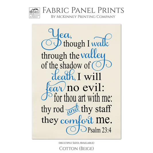 Psalm 23 - Religious Cotton Fabric, Yea, Though I Walk Though the Valley of Death, Wall Art, Quilt