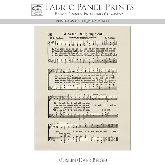 It Is Well With My Soul - Kona Cotton Fabric Sheet Music, Quilt Block, Hymn