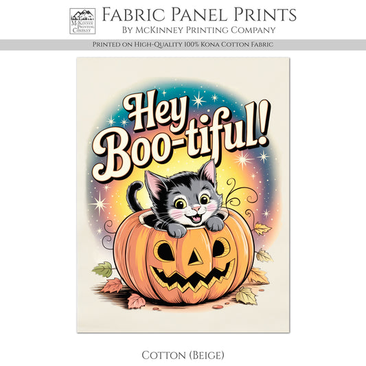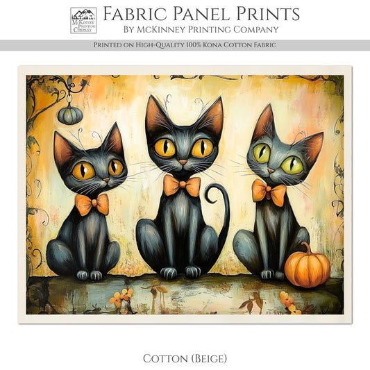 Halloween Fabric Panel - Vintage, Retro, Fall, Cat, Pumpkin, Large Print Fabric, Block Print Fabric, Cotton, Quilting, Quilt, Canvas