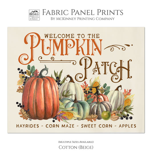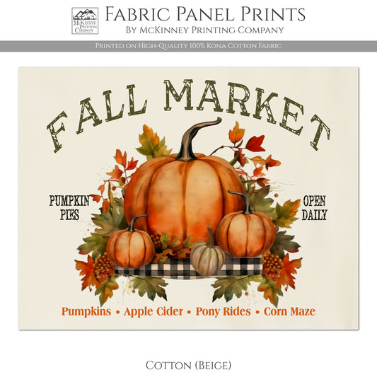 Autumn Fabric - Fall Fabric Panel, Pumpkin, Watercolor, Home Décor, Cotton, Muslin, Quilt Block, Panel, Wall Art